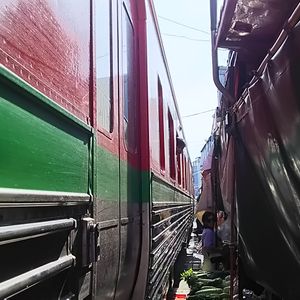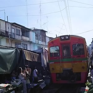 メークロンの線路市場自体は現地感満載でしたが、観光客ばかりでした。それでも市場の屋台をかき分けるように進んでくる電車は衝撃の光景でした。