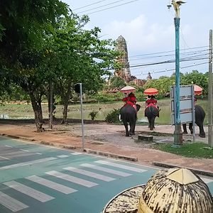 6時半にホテルでピックアップ。メークロン市場へ。観光客と通勤の車や人でごった返しています。駅を背にガイドさんがそれぞれ写真を撮ってくれた後、電車通過まで市場を自由に散策。匂いがきつく、長い時間はとてもいられないです。電車がお店すれすれに通るのは見ものです。ココナッツファームはお土産目的でしょうか?水上マーケットでは、エンジンボードが気持ち良く楽しいですが、手漕ぎボードには乗らなくても良かったと思ってます。観光客向けの商品は値段があってないようで、他で100パーツで買った物が1000バーツで売っていたそうです。またヘビや猿を触ったり、抱いたりしてスマホで写真を撮ってあげると言われて500バーツ請求された人もいました。買い物をしてる人はあまりいないみたいです。ランチは一旦バンコクに戻り頂きました。タイの料理が沢山出ていましたが、同じツアーの皆さんもあまり食べていなかったように思います。ホテルのランチはこんな物かな。ソンブーンのランチが良かったかなと反省。アユタヤの遺跡ではガイドさんが説明してくれ、それぞれ写真を撮ってくれ、見る時間もゆっくりとってくれました。ゾウ乗り体験は期待していましたが、乗って歩いたのは30m?写真を撮ってくれた後、チップ20バーツと言われて渡しましたが、同じツアーでも50バーツ、100バーツと言わた人もいました。 朝早くからのツアーでしたが、終始楽しく、見学の時間も丁度良く、ガイドさんもとても良い方で良い思い出となりました。有難うございました。