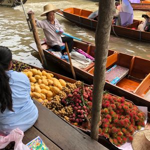 水上マーケットでは是非船に乗ったほうがいいですね。乗らないと面白く無いです。ただ、天気がいいと日光が辛いです。長袖来てたほうがいいかもしれません。