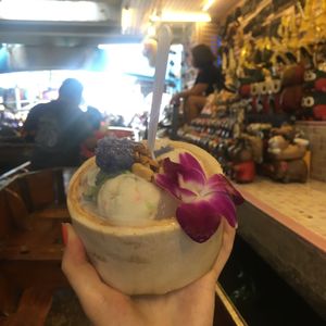 朝は早いですが、午前はココナッツの色んな物を作るとこと、水上マーケットだけで終わります。ココナッツはまぁいいとして、1時間以上かけて行く割に水上マーケットは最悪ですね。両側にあるお店は全てお土産物屋さんで、フックみたいなものでボートをたぐり寄せて押し売りがすごいし、値段はバンコク市内の安いとこの5倍です。何も知らない他の方が購入すると、その場でお店の人が手漕ぎ船のおばちゃんに手数料?マージン渡してました。地元感はまるでなく残念でした。あの時間はアユタヤでもっとゆっくり見る時間に使いたかったです。私にとってのメインのアユタヤは駆け足で見せられた感じでした。