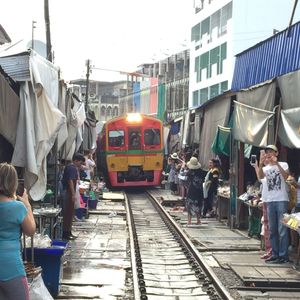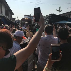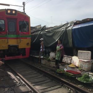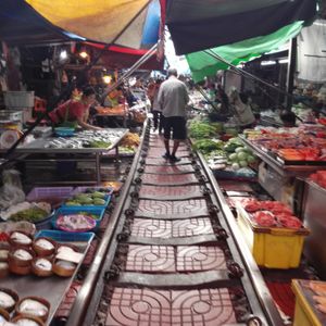 電車が通過するときに市場を畳みますが、できるだけ近くで見たいと思い少し前に行くと現地の方に「No!」と言われてしまいます。先によく見える場所をガイドさんに聞いたほうが良いと思います。