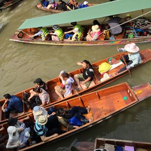 タイ・バンコクの水上マーケットでは、船で商品を売買する昔ながらの市場を見学できます。果物や雑貨を積んだ小舟が運河を行き交う活気ある様子は、タイらしい雰囲気がいっぱい。バンコクから行ける市場は主に3つあり、車で約2時間以内の場所にあります。バスや電車で行けますが、本数が少ないためツアー参加をおすすめします。 ■ダムヌンサドゥアック:毎朝開催の歴史ある市場。規模は一番大きく、早朝から小舟が行き交い、午前中が最も賑わいます。手漕ぎボートに乗って買い物を楽しむことも可能。船着き場からスリル満点のエンジンボートに乗って行きましょう。 ■アンパワー:週末限定で開催され地元民に人気。木に集まった無数の蛍を見られる午後ツアーが有名。 ■アユタヤ:2010年に誕生した新しい市場。連日のように地元タイ人で賑わっています。 現地ツアーを利用すれば、行き方を調べることも不要、自力で行くよりも便利です。格安ツアーや象乗りとセットのツアー、歴史などが学べる日本語ガイド付きツアー、一人旅に嬉しい割増料金なしや到着日に参加可能な空港お迎え付きツアーなどバラエティ豊かな商品をご用意してお待ちしています。