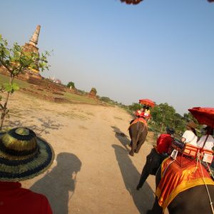 アユタヤの遺跡は、レンガからの熱の影響+日陰も少ないため、バンコク市内より暑いです。遺跡4箇所と象乗りを回りましたが、ガイドさんの説明と車に乗っての移動は快適でした。