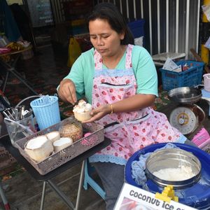 水上マーケットは、ボートでの移動が涼しくて楽しかったです。手漕ぎボートは私は乗らずに、市場でガイドさんおすすめのココナッツアイスを食べました。美味しいです。