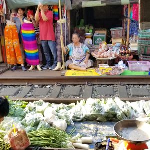 ずっと前から行ってみたかったメークローン線路市場ですが、やはり観光名所となっているわけか、様々な国からたくさんの人が来ていました。また、とても親切なガイドさんだったので気軽に参加できました!いい思い出をありがとうございます!