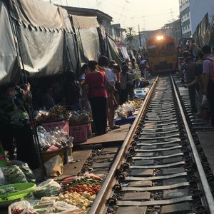 ほんとに線路脇すぐのところまでお店が並び、電車来るとぎりぎりを通っていくのが迫力でした。電車が通る時間は大混雑で、特に中国人がうじゃうじゃいて、電車がお店の際を通る一番の迫力のシーンはめっちゃがんばって前の方に陣取らないと見れません。私は無理でした。でも充分おもしい光景が見れますのでオススメです。