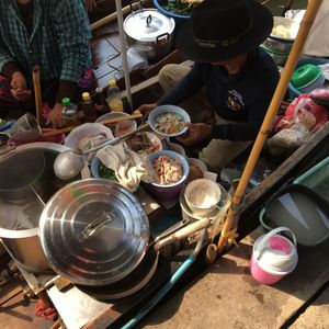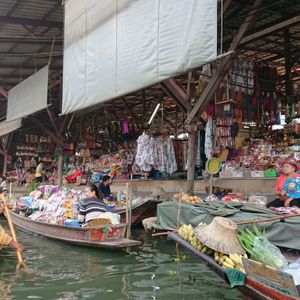 半日のお手軽ツアーで比較的、安価で便利でした。手漕ぎボート、エンジンボートなしで参加し、当日手漕ぎボートのみ現地支払いしました。その分多少安く済みます。水上マーケット自体は買うものは無かったので、購入はしませんでした。
