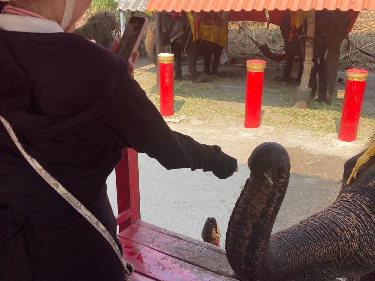 象乗りは結構揺れるので、少しびっくりしましたが、大きな体でゆっくり歩く象の背中から見渡す景色は貴重な体験でした。アユタヤ遺跡と併せて、こちらもタイの良さを存分に味わえます。