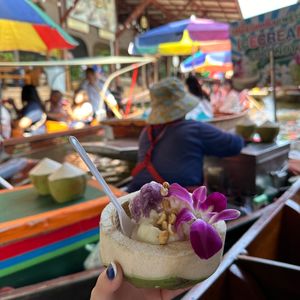 水上マーケットは、手漕ぎボートに乗るのが楽しいです。渋滞する船の往来も迫力があります。