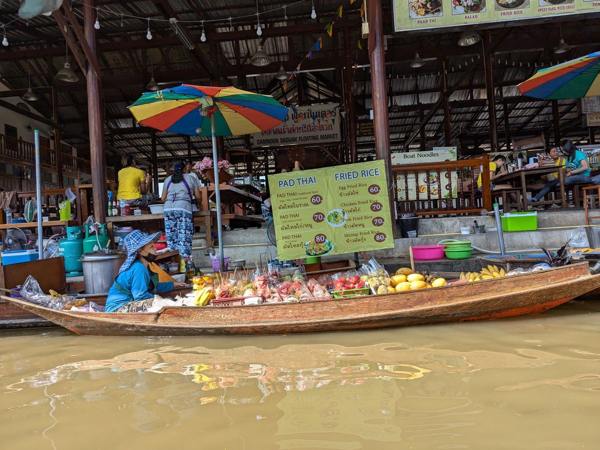 手漕ぎボートは別料金ですが、マーケットの様子を肌で感じられるとても良い体験でした。せっかくの機会ですので、乗ることをお勧めします。バスの座席によっては冷房が当たるので、上着があると良いかもしれません。