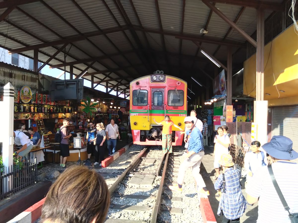 線路市場そのものも賑やかで楽しいところですが、列車が通過するのはアトラクションのような迫力があります。