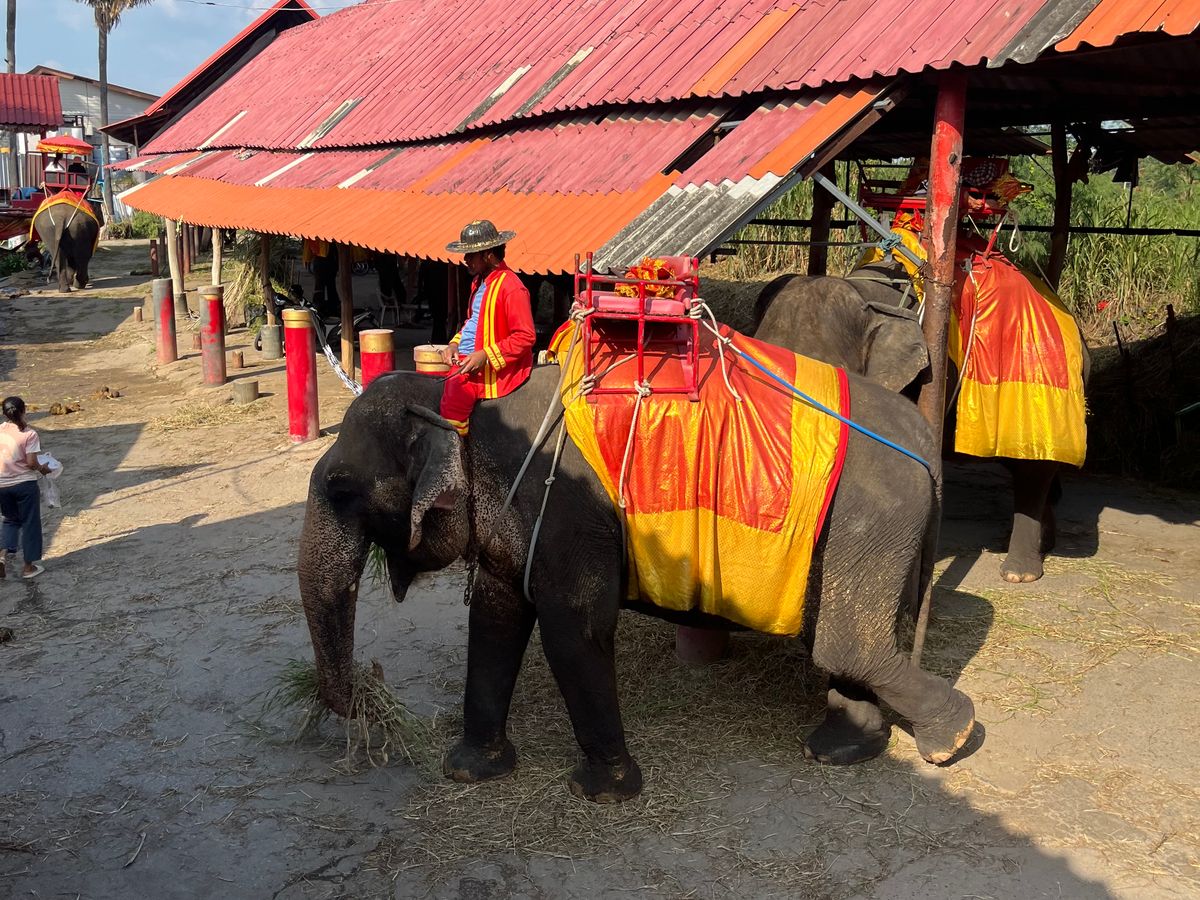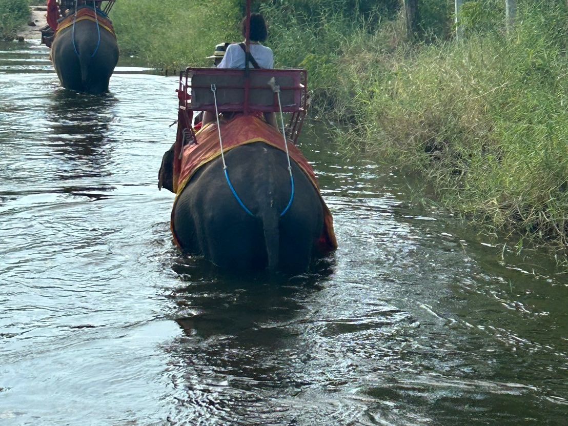 水上マーケット、象乗り、アユタヤ