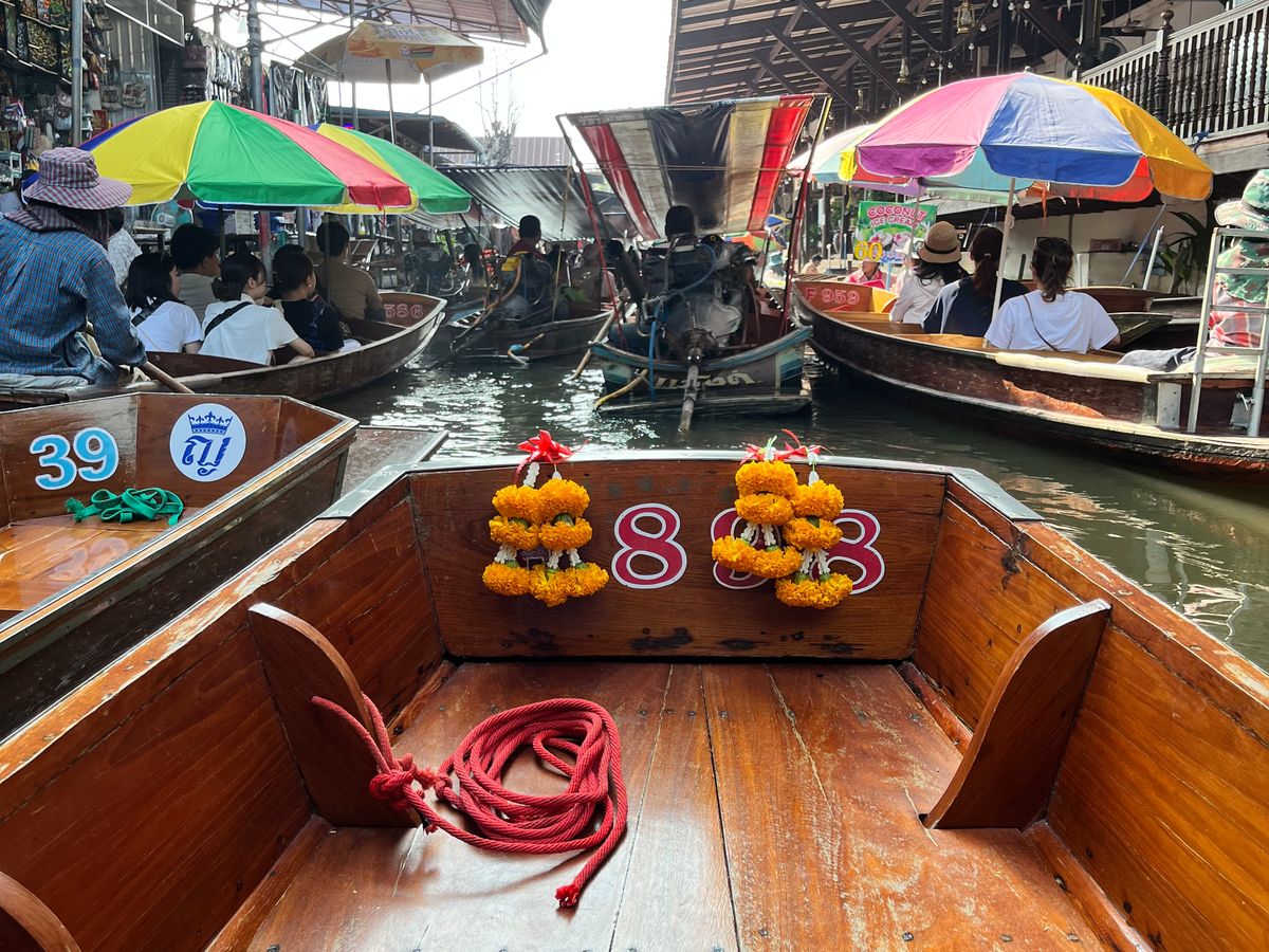 まず、水上マーケットでは日本人2組で船に乗り回ります。とにかくすごいスピードで船が走るのでアトラクションのようでした。