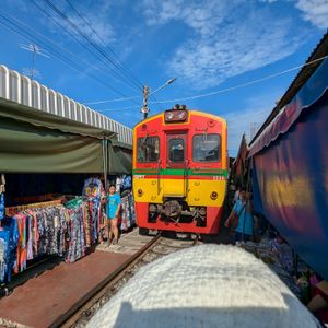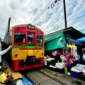 水上マーケットでは、とても心地よく楽しく、メークロン鉄道市場は、迫力ある電車の通過を目の前で見る事が出来、とてもよい体験が出来ました。市場で自由昼食だったので70バーツで安くて美味しいガパオライスを頂きました。カフェでは、ゆったりとのんびり過ごさせて頂きました。カフェメニューは豊富でした。解散場所のマーケットは、とてもキレイでお洒落なマーケットで楽しかったです。充実の1日を過ごさせてもらえました。ガイドのヤンさんは、日本語が上手でとても親切なのでで安心出来ました。