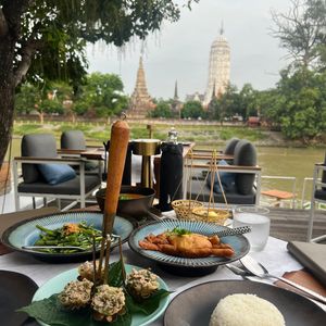 朝から夜まで盛りだくさんの内容で、お食事は2回ともホテル内レストラン。特に夕食は、とても素敵なブティックホテルの川沿いのテラス席。アユタヤを眺めながらの美味しいお料理は最高でした。