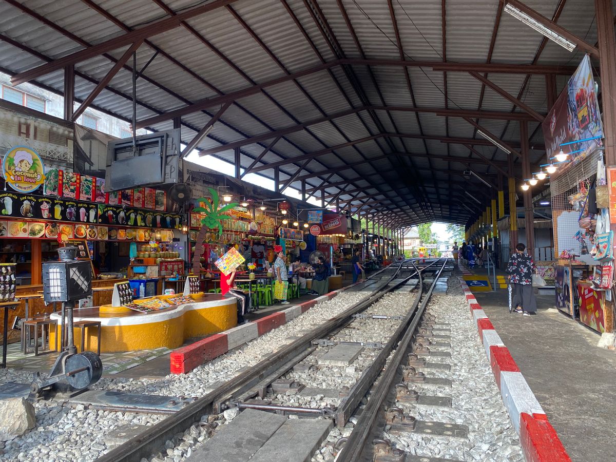 ただ電車がホームに入ってくる場所だったため、メークロンならではのお店の軒がパタパタ閉まっていく様子は見られません。