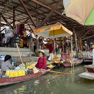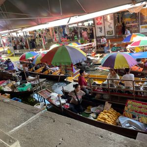 水上マーケットは船が混雑していて中々進まず大変でしたが、船でお店を回る貴重な体験が出来ました。見てみたいお店が奥にあったのですが、そこは通らず船頭さんにどう伝えたら良いか分からずで少し残念でした。暑い時期だったのですが珍しいヤシの実アイスやジュースが売っていて楽しむ事が出来ました。