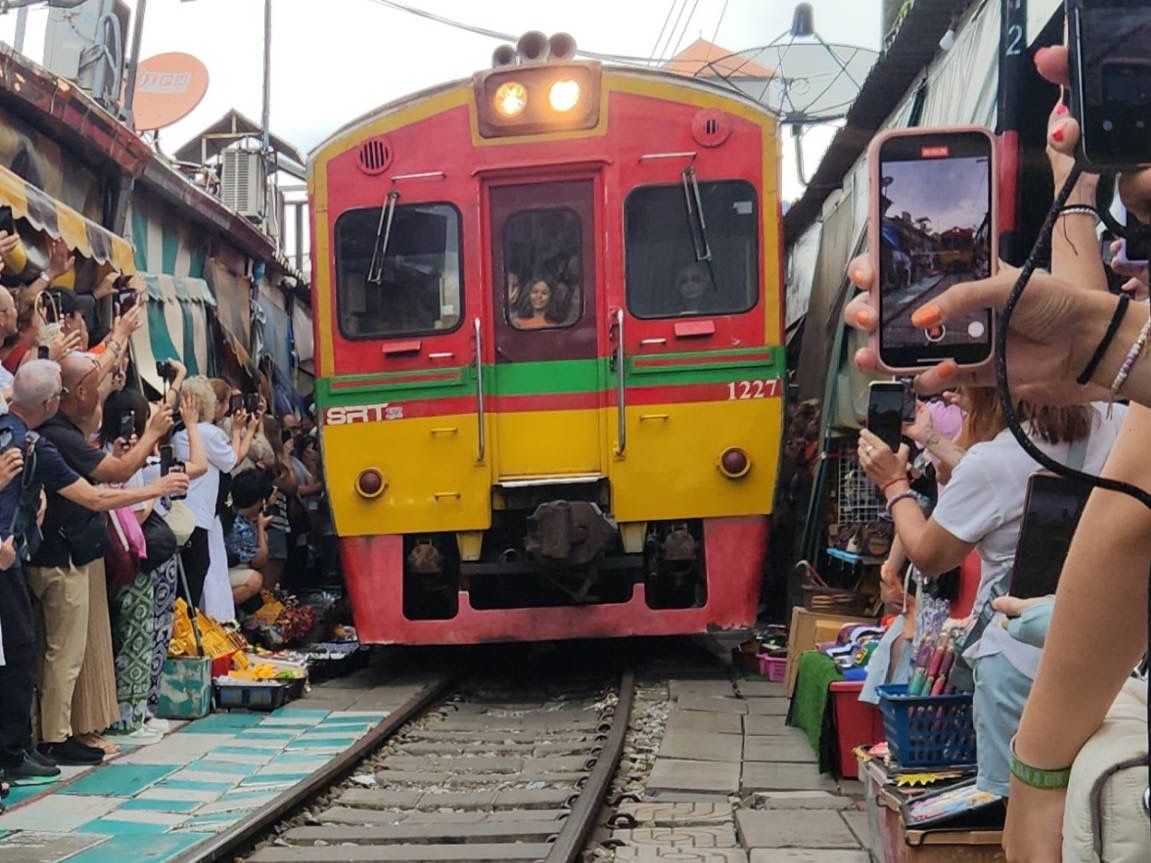 メークロン列車乗車中には、ガイドさんに、最後部運転室にも順に案内していただき、列車通過後、あっという間にお店が開いていく活気溢れる様子を列車から見たり、動画を撮る事ができました。実際に乗車し、市場エリアに入る前の、路線脇の人々の暮らしが見られた事も良かったです。