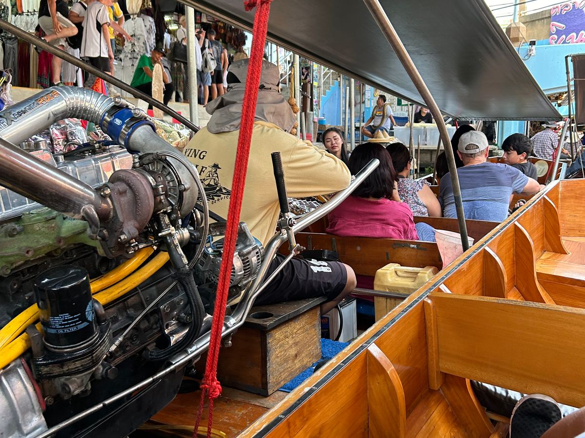 想像してた水上マーケットの小舟は別料金1人200バーツ。そこに行くまでがモーター付きの船でした。