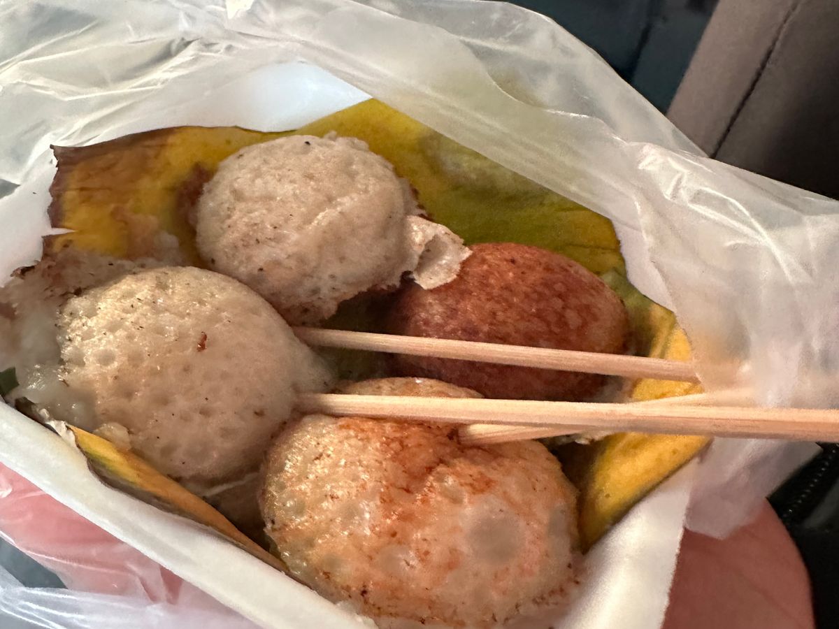 市場ではタイの果物(ランブータン?名前忘れました)、水上マーケット後バナナの唐揚げを試食程度に、水もペットボトル一本いただけます。