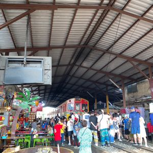 メークロン線路市場の電車通過時は道路側ではなく市場の少し入った所で見たかったので残念。