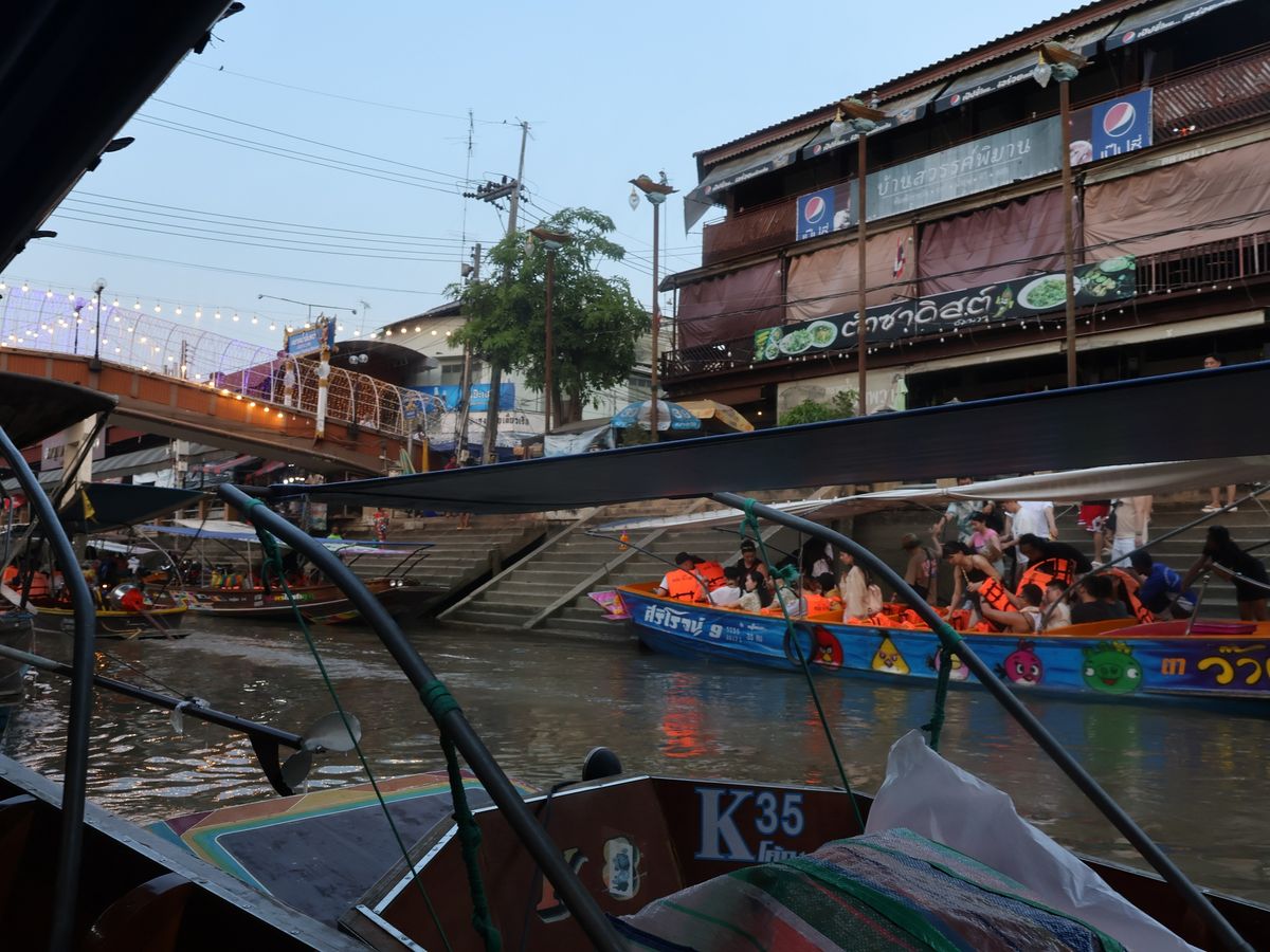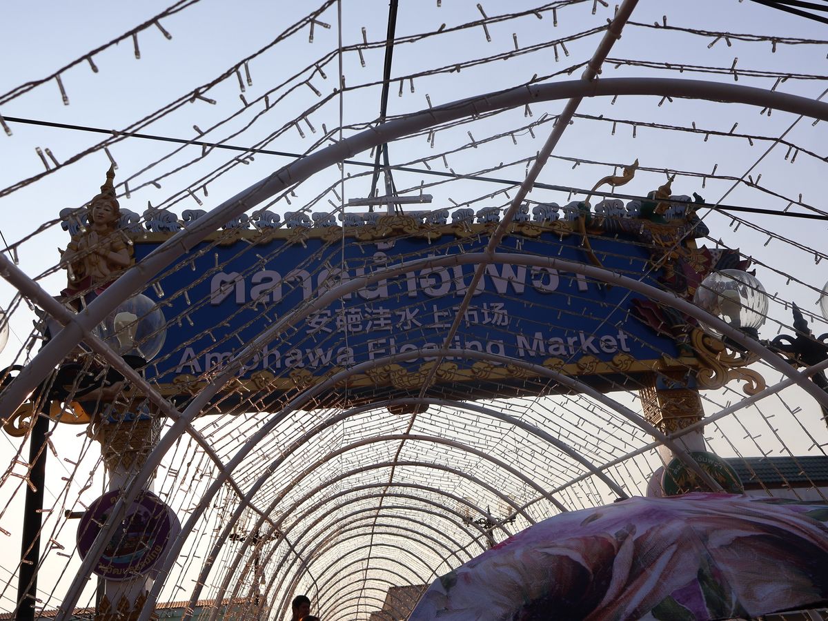 週末限定の水上マーケットのツアーに参加しました。首都バンコクから車で1時間以上進んだ先に目的地のアンパワーに着きました。