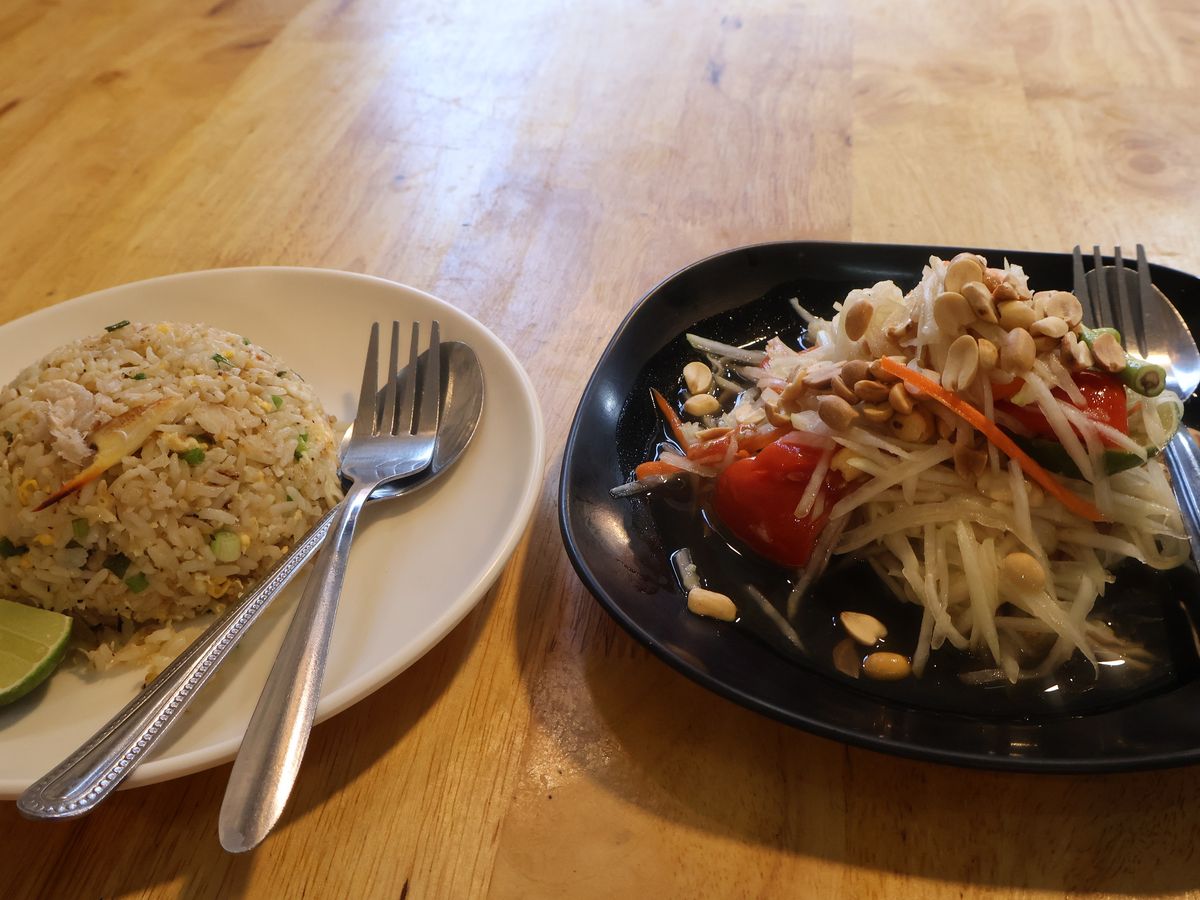 アユタヤでの夕食はおしゃれなタイ料理でとてもおいしかったです。これまでタイ以外の国でしかタイ料理を食べたことがなく、苦手意識があったのですが、この夕食でタイ料理のファンになりました。ちょっと不満だったのは、タイのお酒があまりないこと。嫌いなビールを飲むしかなかったのが、ちょっと悲しかった。しゃれた屋外テラスでの夕食で、暑さにはビールが合ってましたが