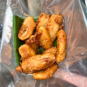 メークロン線路市場では、ガイドさんがバナナの天ぷらをご馳走してくださいました。