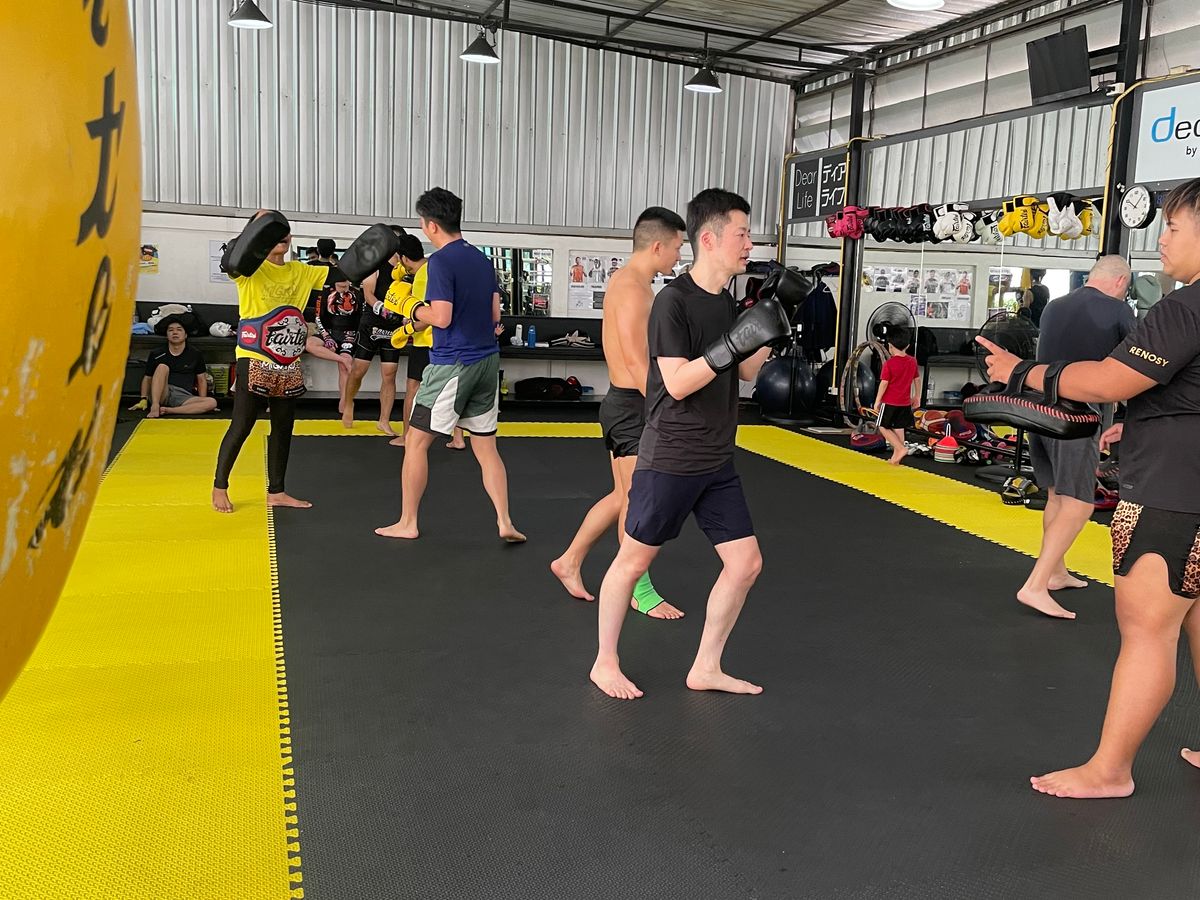 タイ人の講師の方が、右左膝肘など簡単な日本語と英語を使いながら、分かりやすく教えて下さり、パンチやキック、エルボー、アッパーなどなんとか形になり、とても楽しかったです!着いてすぐウォーミングアップで15周ほど走り、途中腹筋スクワットランジプランクなどの筋トレを挟んだりと、普段から運動していないと結構ハードな内容でしたが、それも含めて本当に楽しかったです!