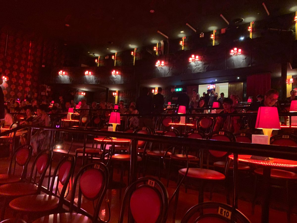 さらに残念だったのが座席配置。文章では難しいですが階段式で目線をずらした座席配置がしてあり、さらに同じ段の席にひとつのクループとして後ろに3つの椅子の配置、後方真ん中の椅子の前にドリンク用のテーブル。そしてその隣に2つ椅子があります。それをひとグループとして同じ段差に数グループ並んでいます。天辺が無いピラミッドの様に真ん中以外は多少ずらしてあるものも本当に少しの為、後ろの座席の人は非常に見えにくいです。