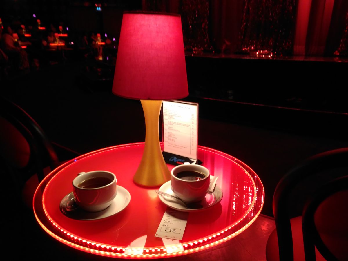 ショーは大変素晴らしいもので、時間を忘れるほどでした。予約済みのバウチャーをカウンターに見せるとチケットに交換して貰えます。チケットには、お席で無料のドリンクが選べることが記載されています。なお、外から飲み物を持ち込むことが禁止されています。