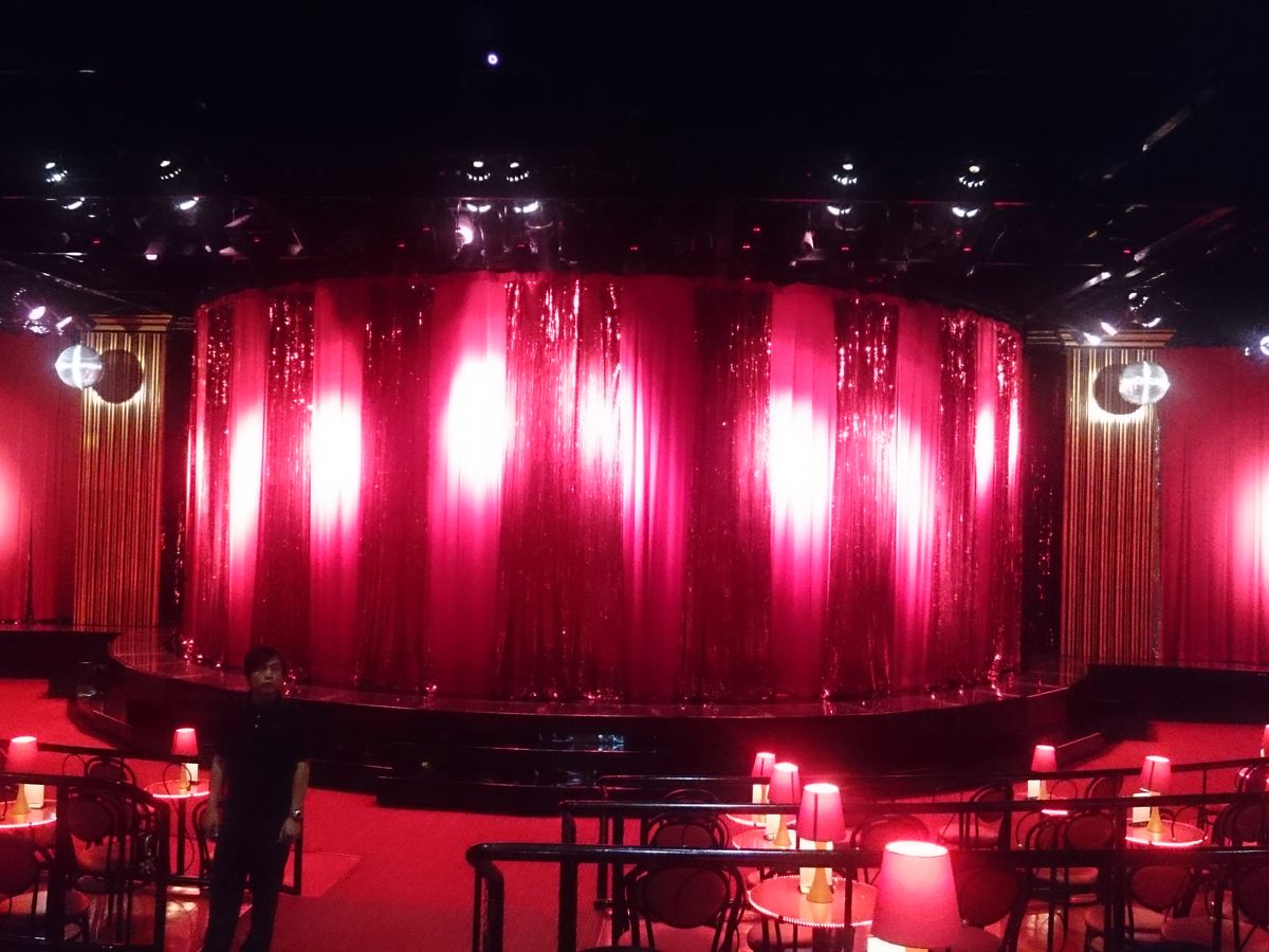 午後8時15分からの部でした。8時からしか入場できないと思い込み、アジアンティークをかなり長い時間ブラブラしていましたが、8時に会場入りした時は、もう会場はほとんど埋まっていました。居心地の良い椅子なので、早く会場入りすると良いと思います。迫力があるステージでしたが、口パクだったようです。ニューハーフさんは、皆さんお美しく、脚の綺麗さに驚きました。会場は、写真OKです。