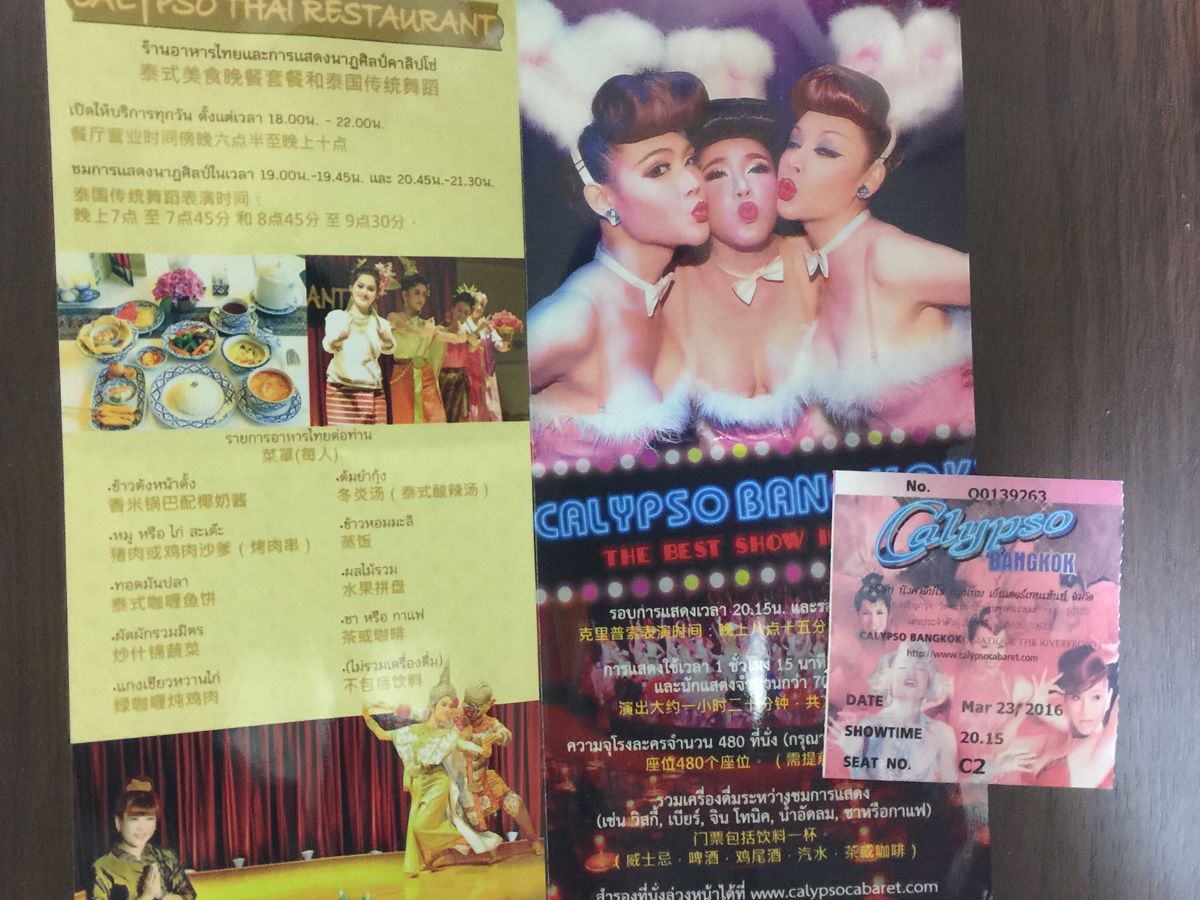 アジアホテルにあった頃、よく行っていました。しばらくタイから遠のいていたので、久しぶりのバンコク滞在で、アジアティークに引越したカリプソに行ってきました。内容は多少変わっていましたが、安定感のある感じでした。初めてニューハーフショーを観るにはクセがなく、楽しめると思います。レート、物価上昇の兼ね合いで以前に比べて割高感があるのは仕方ないですが、残念です。