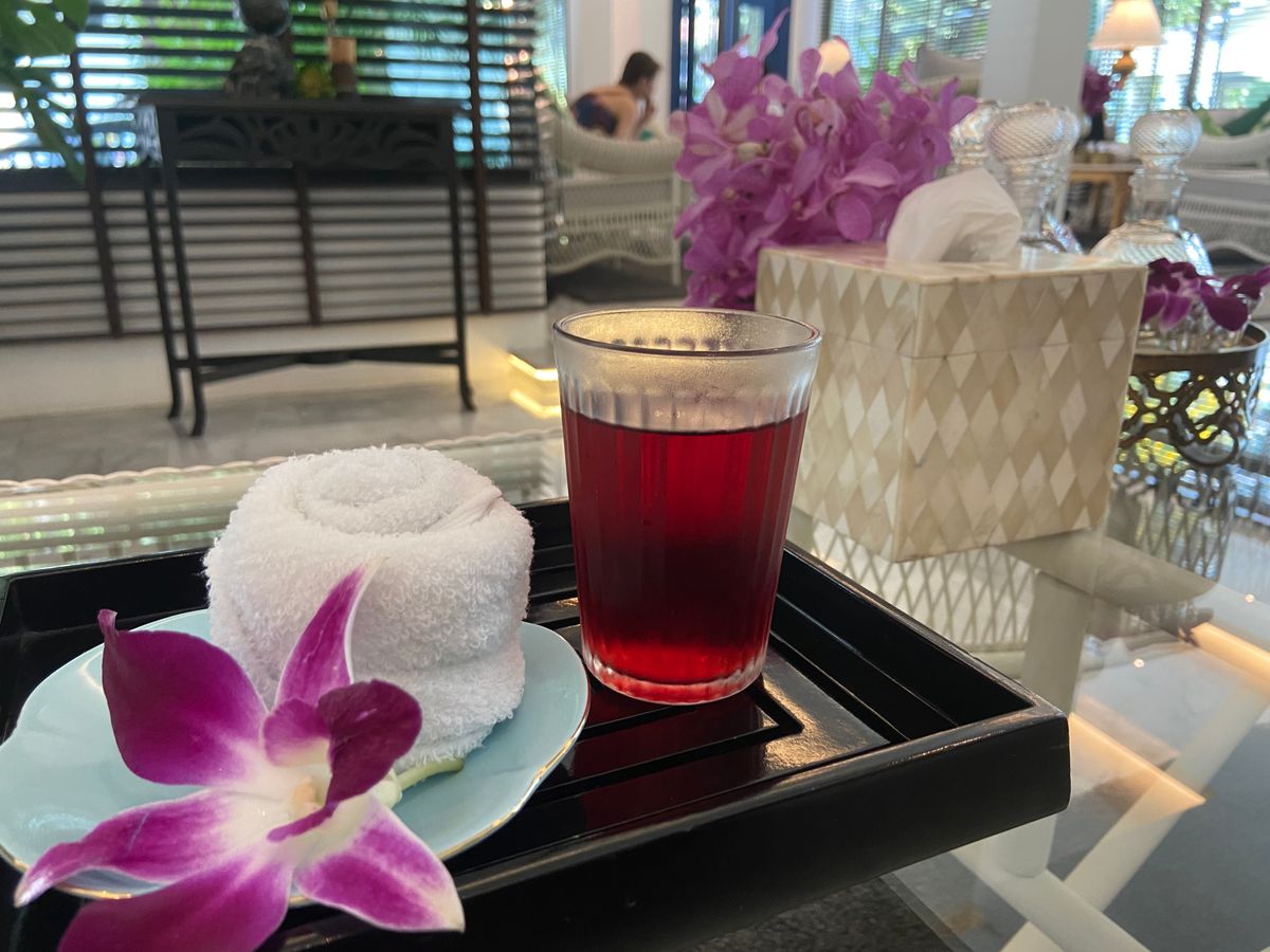 とっても素敵な雰囲気で、受付ではおしぼりとウェルカムドリンクをいただき、使用するアロマオイル等の香りを決め、建物の中を通り抜けて個室へ。通路も南国感のある素敵なところで、気分もいっそう高まりました!