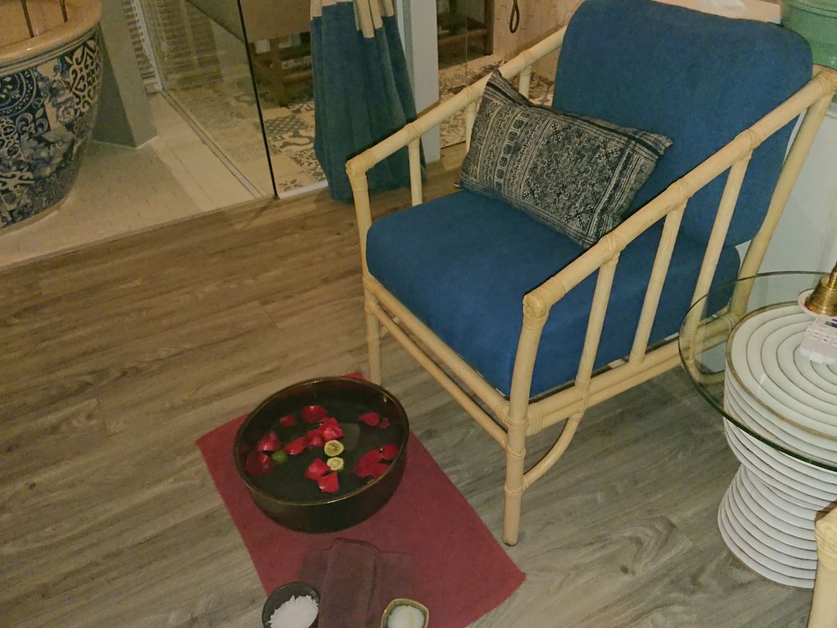 ナナ駅からお店に向かう道は本当にこんな所に素敵なスパがあるのか??と心配になりましたが、スパの所だけ異空間のように素晴らしい所でした。受付の部屋も、飾ってある花も、中庭も本当に美しく、優雅な一時を提供してくれます。