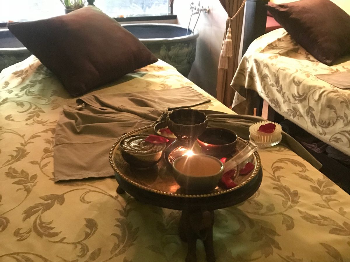 大晦日に母親、旦那の3人で予約をしました。私と母親は3時間のスコータイパッセージ、旦那はアユタヤ パッセージにしました。スコータイパッセージにはハーバルバスがあり、お湯加減もちょうどよく買い物の後の疲れた体が一気に癒されました。私が先にバスに浸かり、その間母は最初にスクラブを受けていました。お部屋もちょうどよい暗さと温度調整で終始快適でした。また、最後のフェイシャルがとても気持ちよく、終わったあとはツルツルでした。あまりにもよかったので、施術後に今回のトリートメントで使用したフェイシャルスクラブを買って帰りました。HARNN製品はパッケージデザインがとても綺麗でお土産にもとても好評でした。旦那はボディのみのパッケージでしたが、とても気に入ったようで、また来たいと言っていました。また次回予約したいと思います。