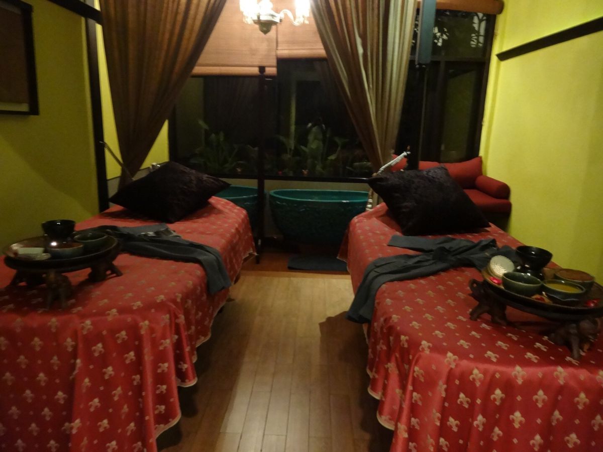 シャワー付きペアルームで母と一緒にマッサージをしてもらいました。