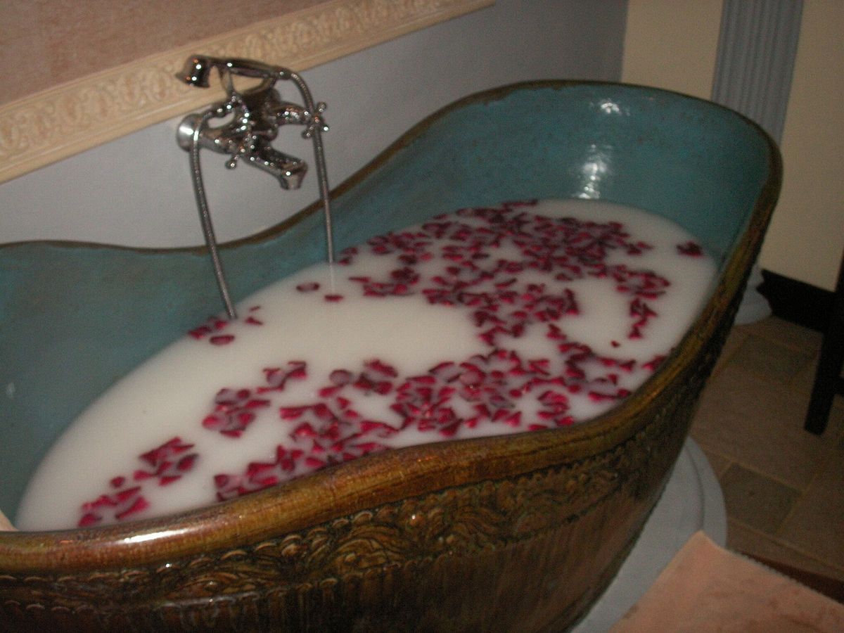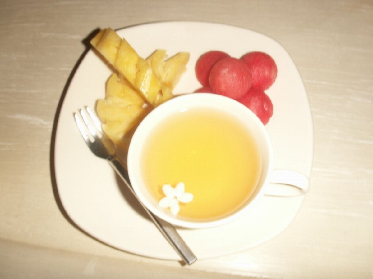 そして、最後にフラワーバスで温まり、シャワーをあびて終了です。フラワーバスの間には、冷たいお茶とフルーツを用意してくれて、お風呂につかりながらいただけます。