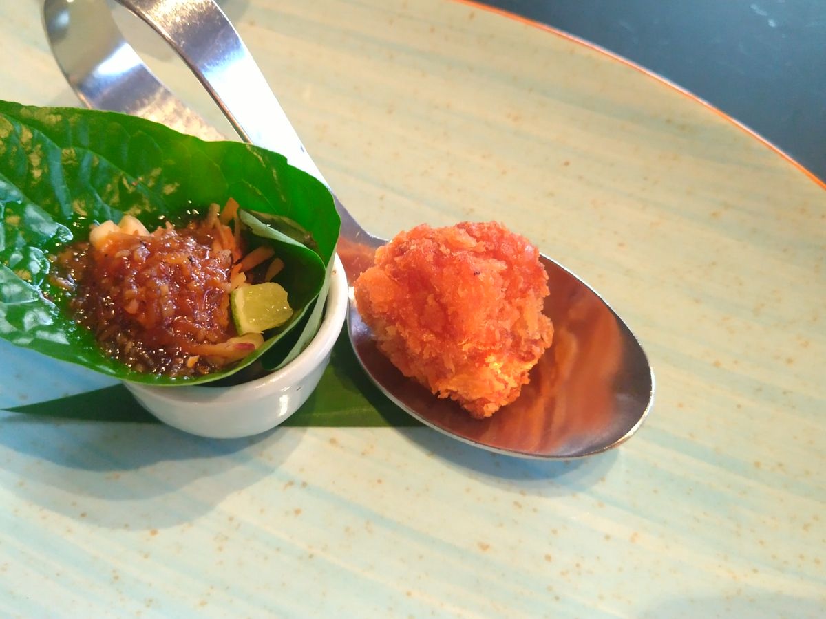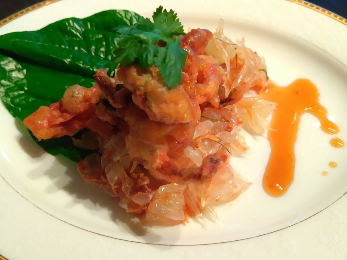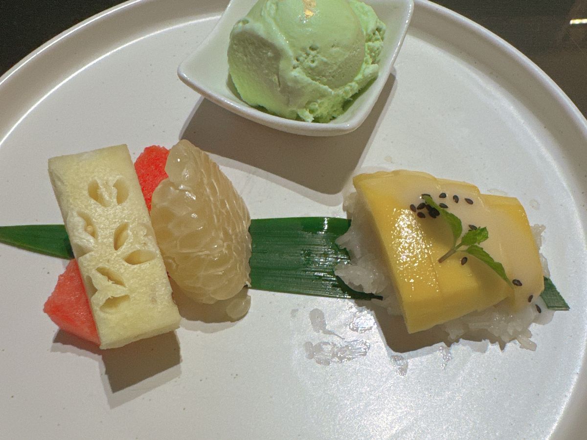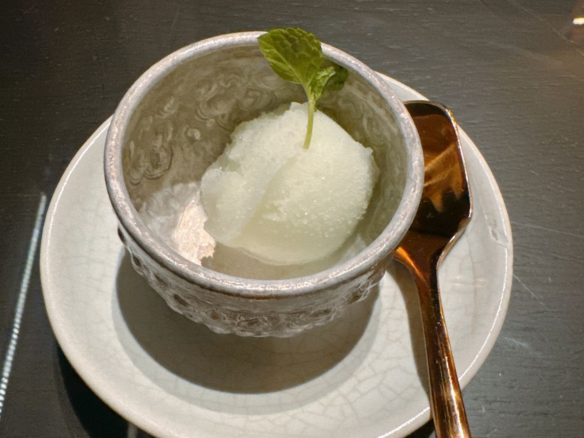 途中に口直しとしてパンダンリーフか何かのシャーベットも出てきたので、それもカウントすると計8品でした。