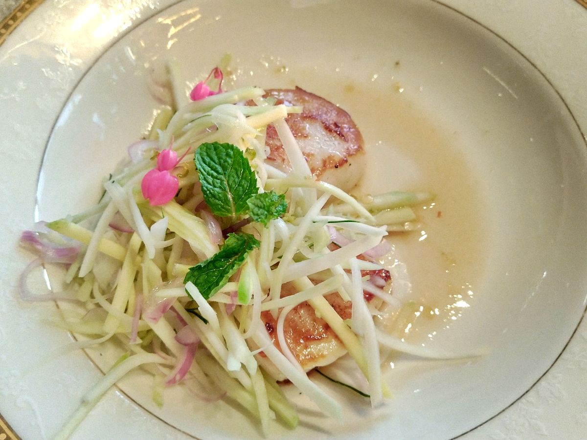 ディナーは5コースとありますが、プラスで2品ほど無料の先付け的なものが提供されました。