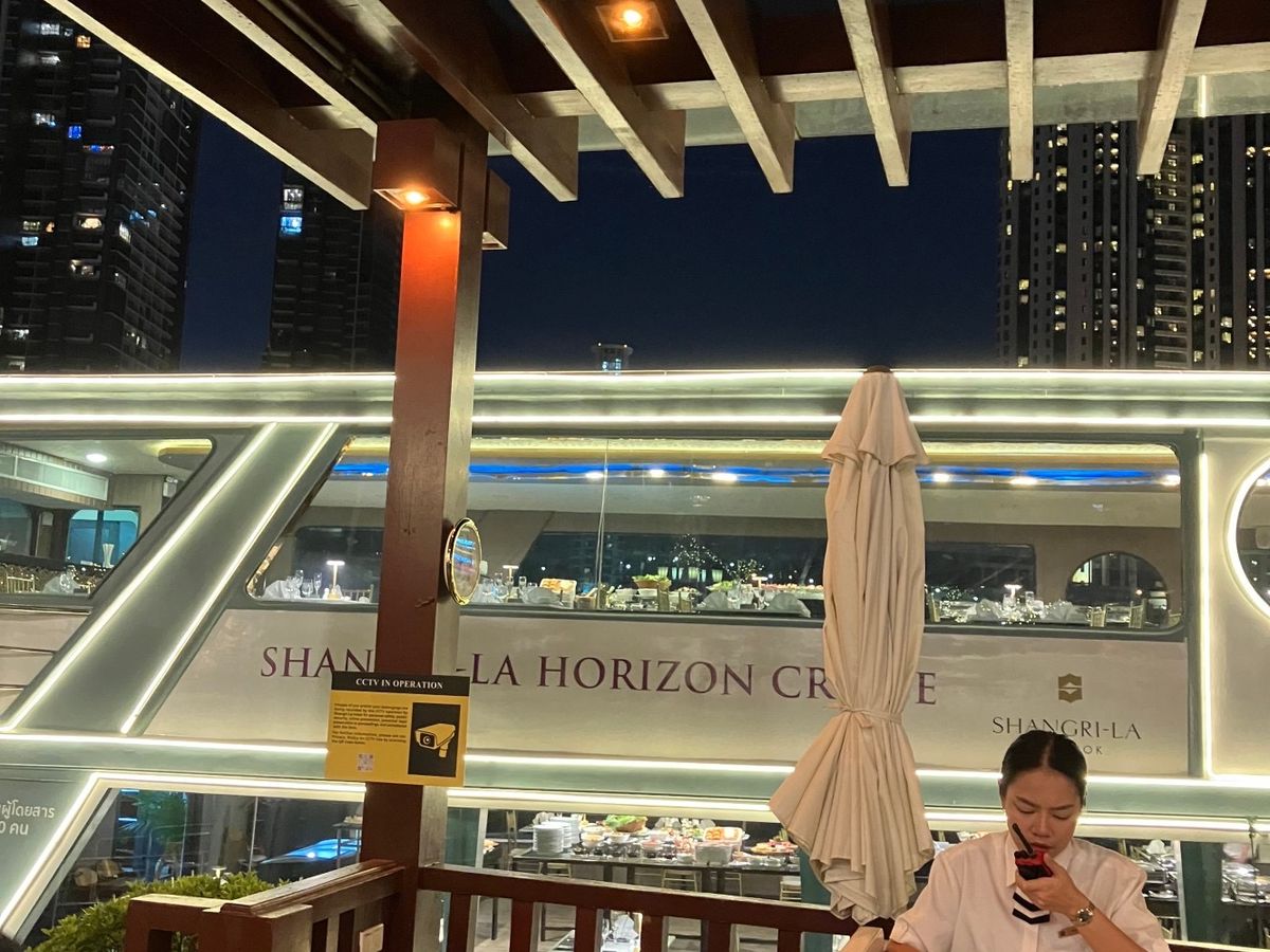 シャングリラのビュッフェは大変きれいで美味しかったです。BTSからもすぐ近くにホテルの入り口があり、ホテルの従業員に聞けば乗り場を案内してくれます。いつも見ている王宮や暁の寺院も大変きれいでした。ホテルは大変きれいです。宿泊している方も乗るといいですよ。