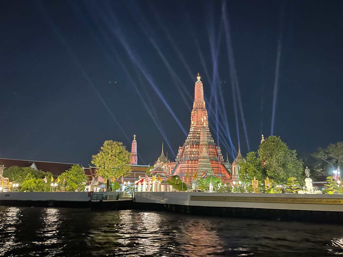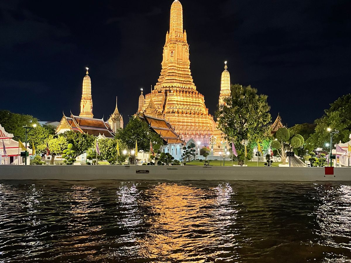 クルーズは、ライトアップされたワットポーや王宮などの歴史的建造物の前を航行し、良かったです。