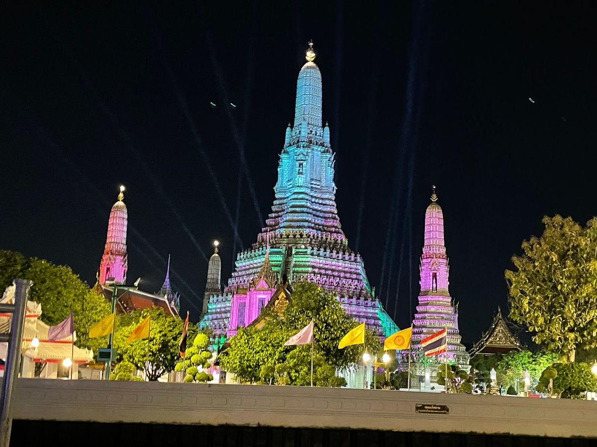 ライトアップされたワットやチャオプラヤー川沿いの風景も綺麗でした。