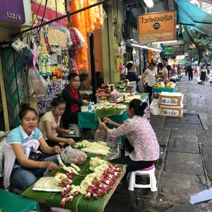 お寺が開く前の時間におかゆの屋台やお花の市場に連れて行ってくれました。