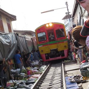 ホテルで待っていると現れたのはピーさん。どうしても連れて行きたい所がある、時間がちょうどよいから。。。と線路市場に案内してくれました。日本では見ることのできない光景でした。