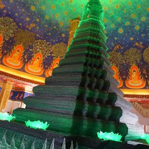 アユタヤでゾウ乗り水上マーケット遺跡巡りと午前中に済ませてバンコク市内に戻りワットパクナムへ。