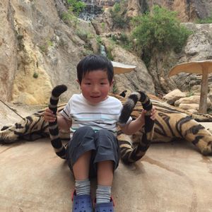 ガイドさんも私達の希望を全て聞いてくれて水上マーケットへはスピードボートでマーケットへ、結構なスピード感がありこれは楽しかった!その後手漕ぎボートでマーケット内で美味しいパッタイ、フライドライスを食べてフルーツも。確かにガイドさんオススメだけあってとっても美味しかった。その後帰り道に16kgもある大蛇との写真撮影は1人200バーツも取ったけど滅多に出来ない事なので家族それぞれ写真撮影。その後エレファントビレッジでぞう乗り。1人600バーツで高いと思いながらこれまた折角来た記念に。楽しかったけど、最後のチップの請求がぞう乗りのお兄ちゃん意外と高かったなあ〜と。やりたいことやれて時間通りにホテルに送ってもらい、ガイドさんがホテルのチェックインまでしてくれてとても気が効いた人で私達もちゃーんとチップをはずんであげました。