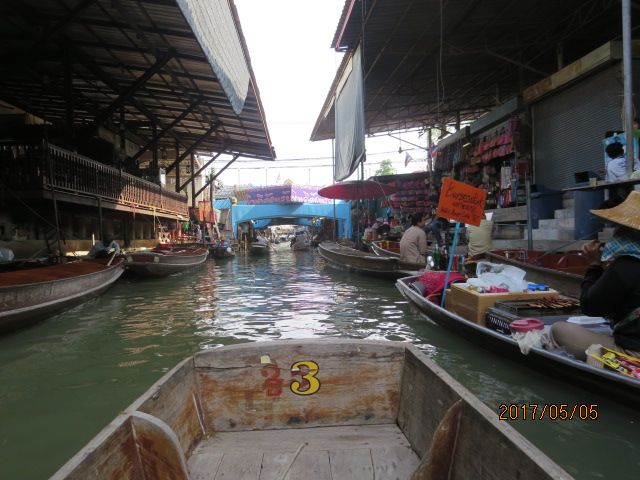 バスも定刻通り迎えに来て向かいました。途中のお土産屋とかは特に見るものがなかったですが、メインの水上マーケットはやはり日本ではない環境に興奮しました。途中でスピードの上がる船にはテンションがあがります。食べ物はアイスを食べましたが、お腹具合が悪くなることもなかったので、アイスは安心かと思います(笑)