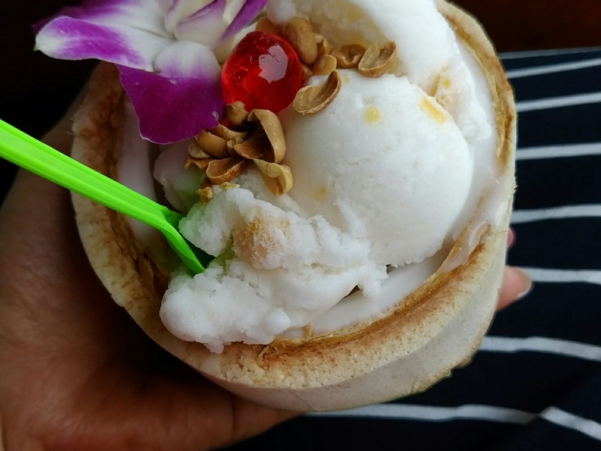 水上マーケットは、ココナッツアイスが想像以上においしかったです!あと、マンゴスチンとか日本では普段食べれない果物を買って、船の上で食べて楽しかったです。
