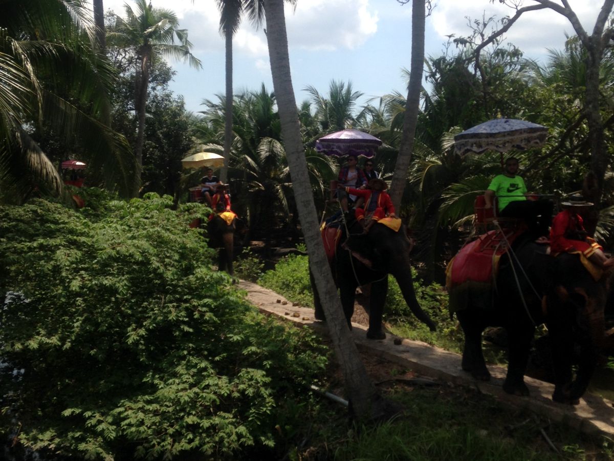 水上マーケットでドリアンも食べ、アユタヤでの観光、像のり初体験
